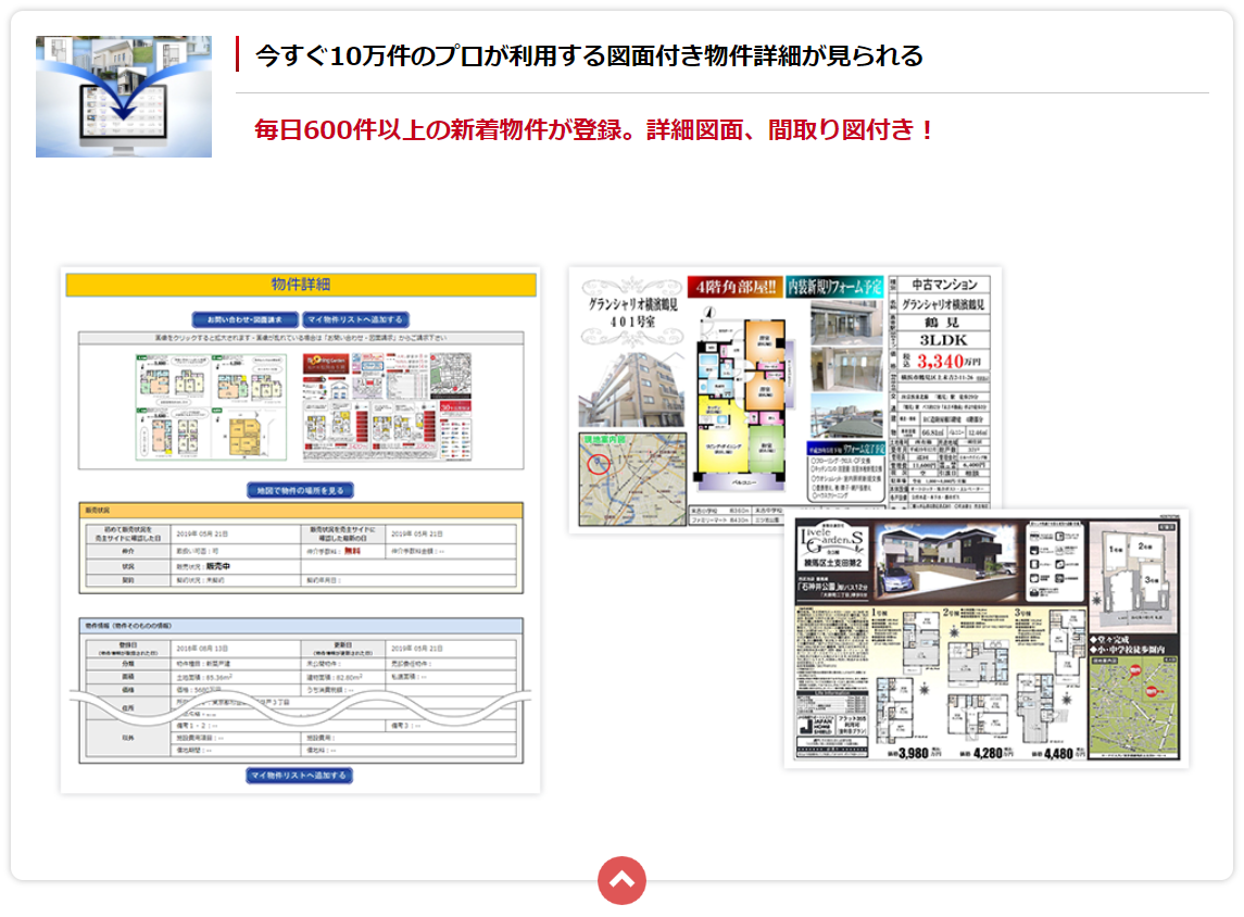 販売図面:自動取得して帯を自動で削除(約80%が図面付き)